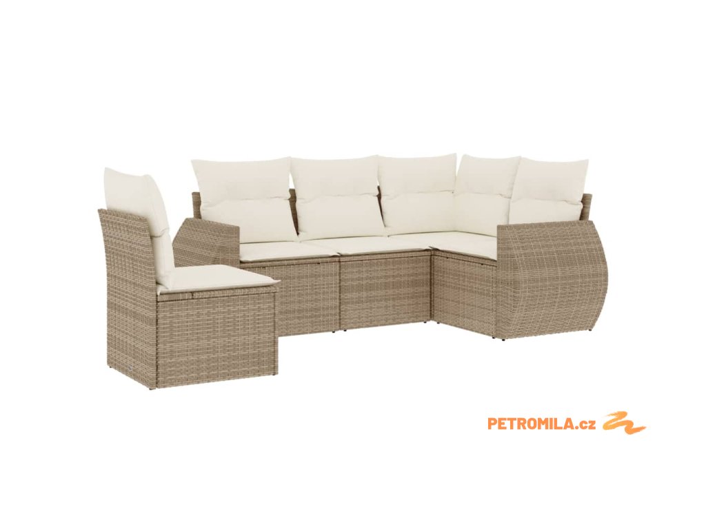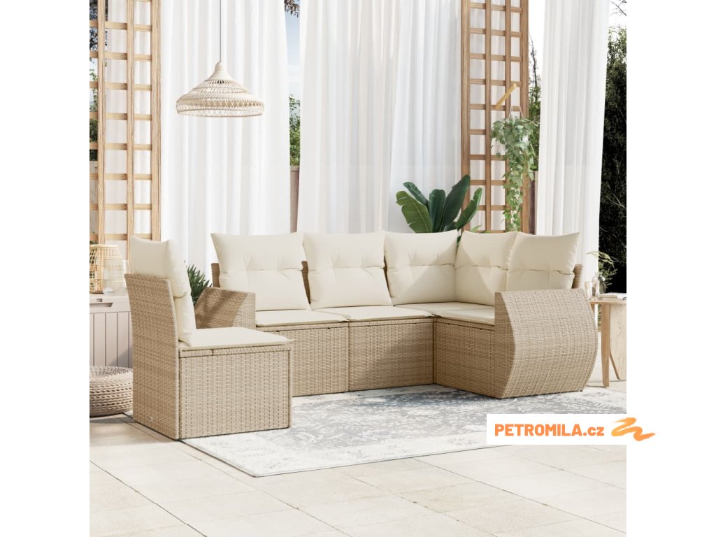 5dílná zahradní sedací souprava s poduškami béžová polyratan