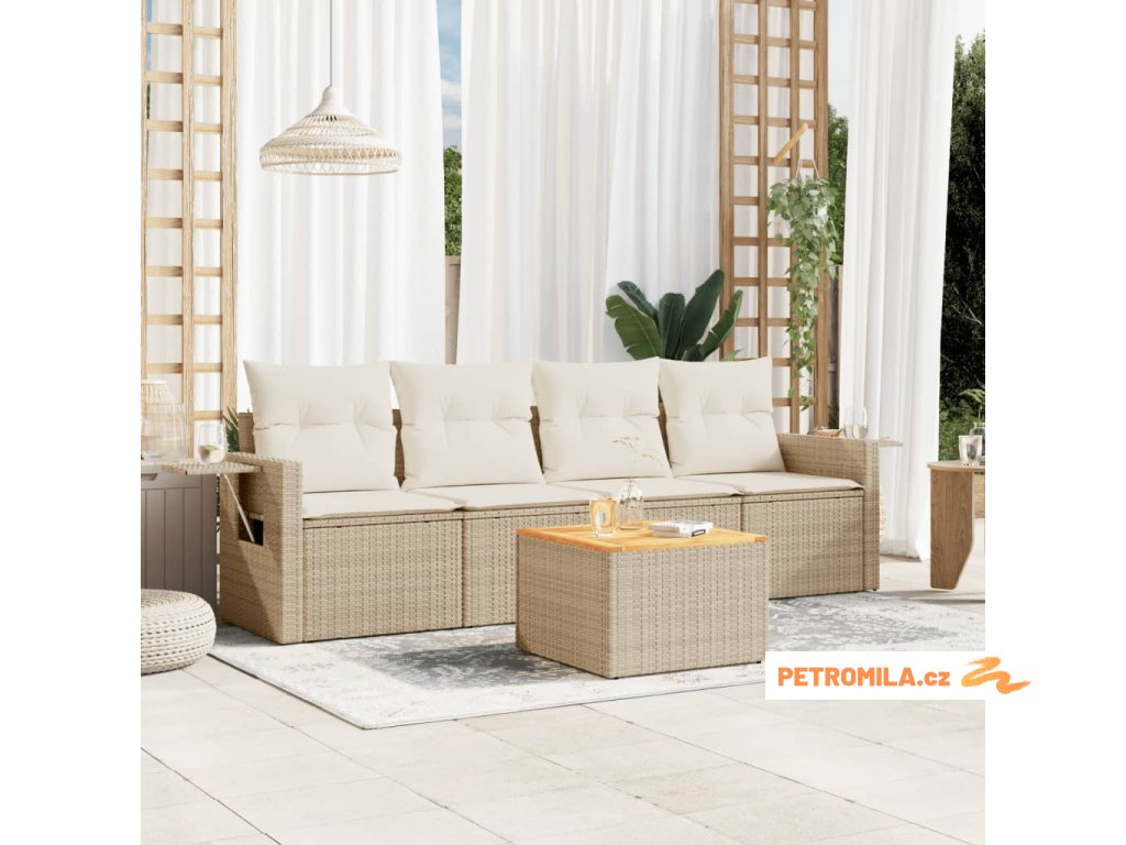 5dílná zahradní sedací souprava s poduškami béžová polyratan