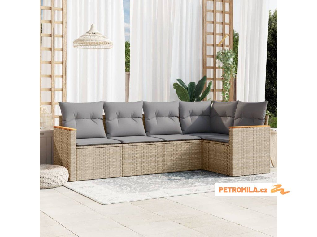 5dílná zahradní sedací souprava s poduškami béžová polyratan