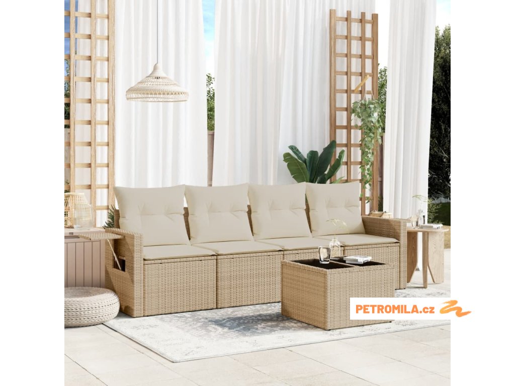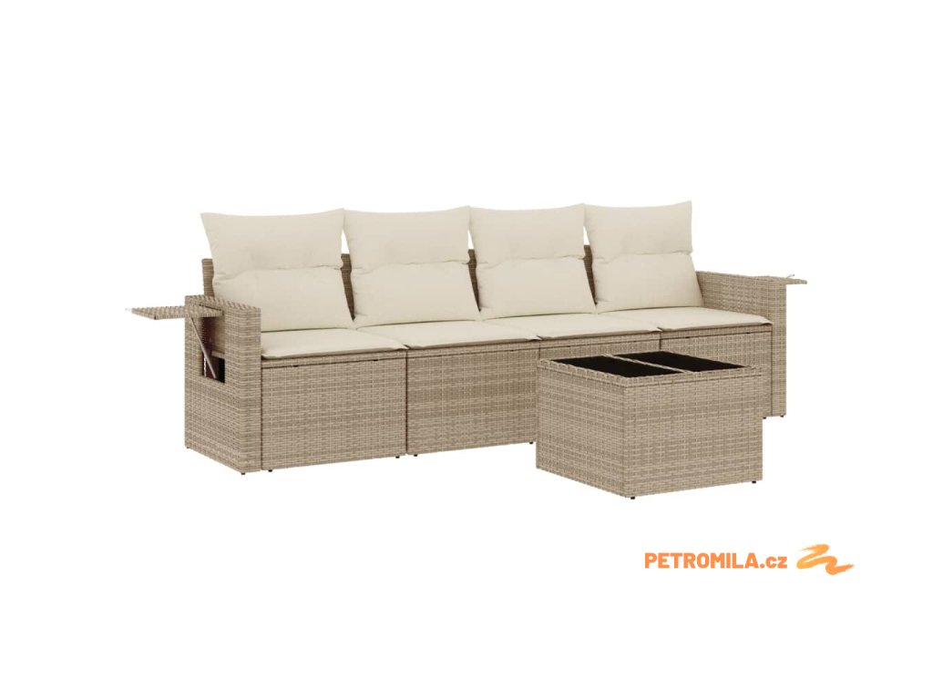5dílná zahradní sedací souprava s poduškami béžová polyratan
