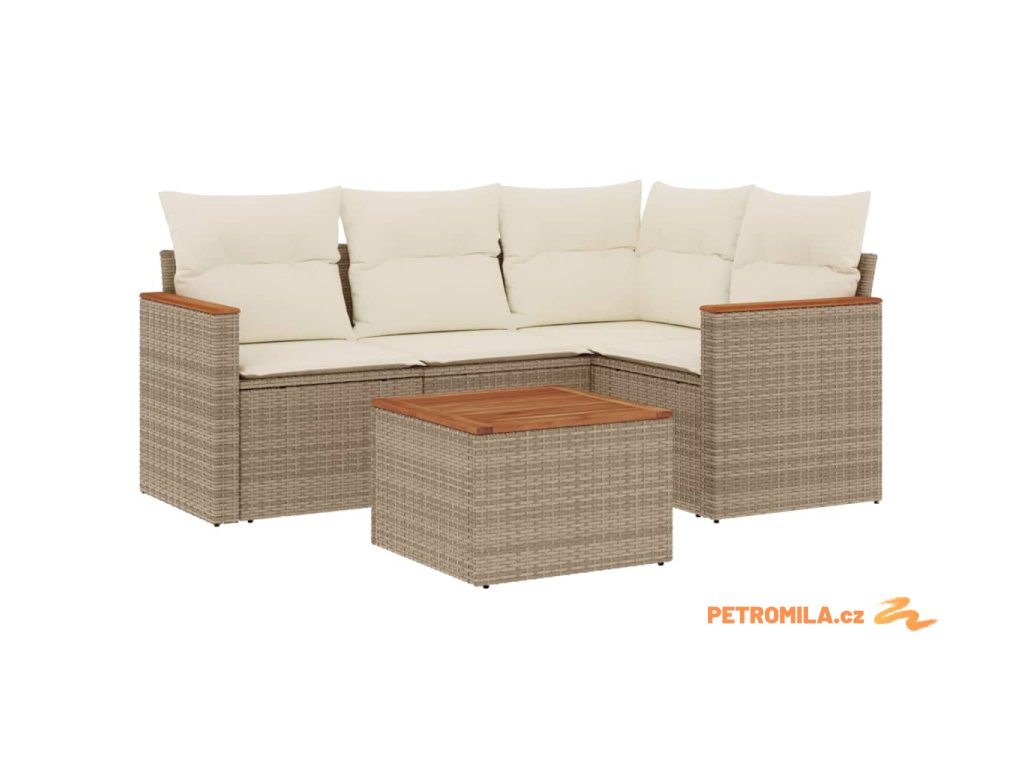 5dílná zahradní sedací souprava s poduškami béžová polyratan