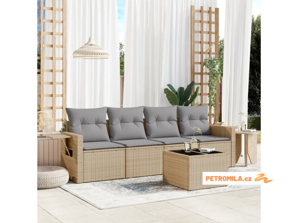 5dílná zahradní sedací souprava s poduškami béžová polyratan