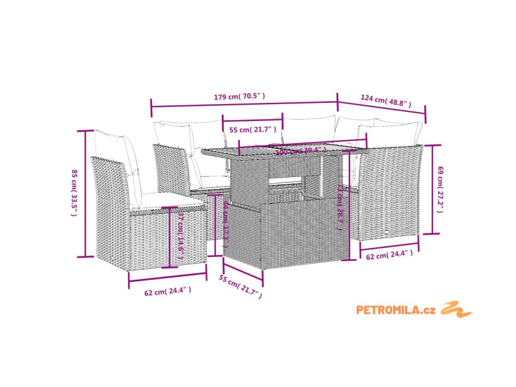 Tato zahradní sedací souprava je dokonalým doplňkem vaší zahrady, terasy nebo dvorku a poskytne vám pohodlné a příjemné místo, kde si můžete povídat s rodinou a přáteli nebo jen tak odpočívat a užívat si pobyt venku.