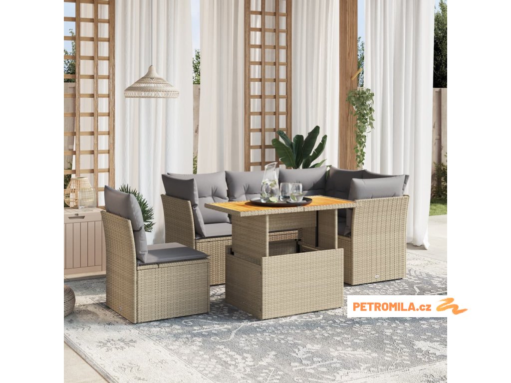 5dílná zahradní sedací souprava s poduškami béžová polyratan