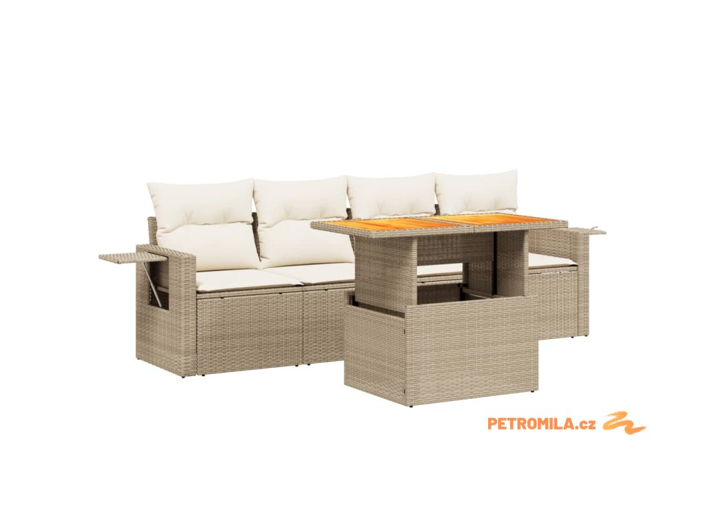 5dílná zahradní sedací souprava s poduškami béžová polyratan