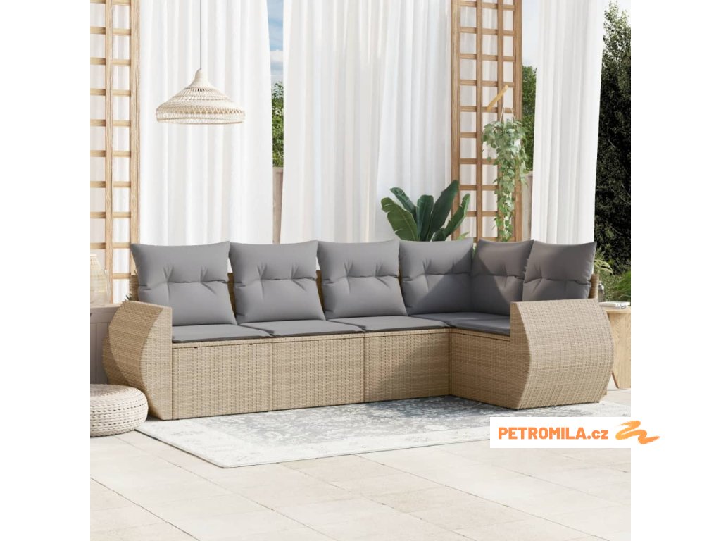 5dílná zahradní sedací souprava s poduškami béžová polyratan