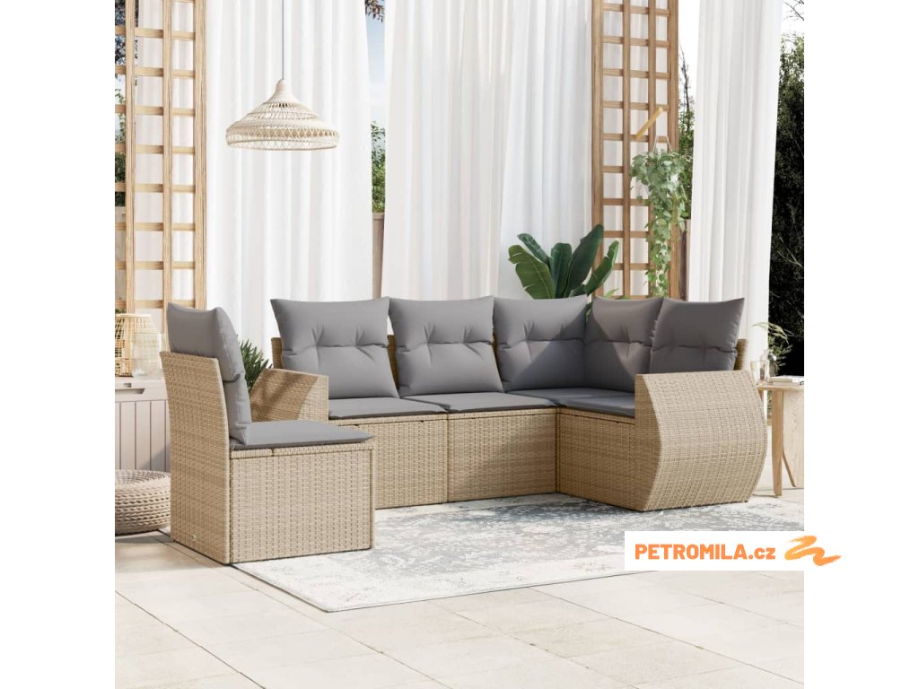 5dílná zahradní sedací souprava s poduškami béžová polyratan