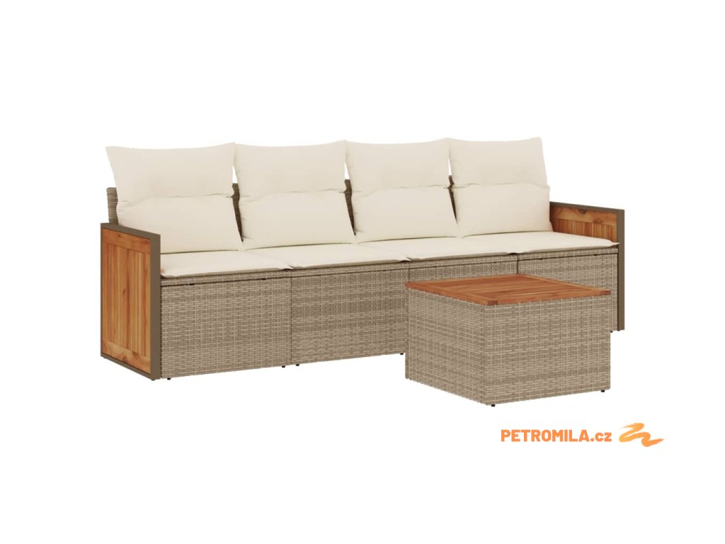 5dílná zahradní sedací souprava s poduškami béžová polyratan