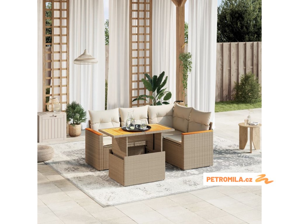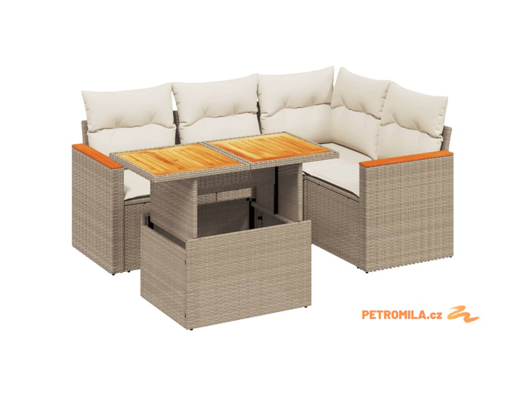 5dílná zahradní sedací souprava s poduškami béžová polyratan