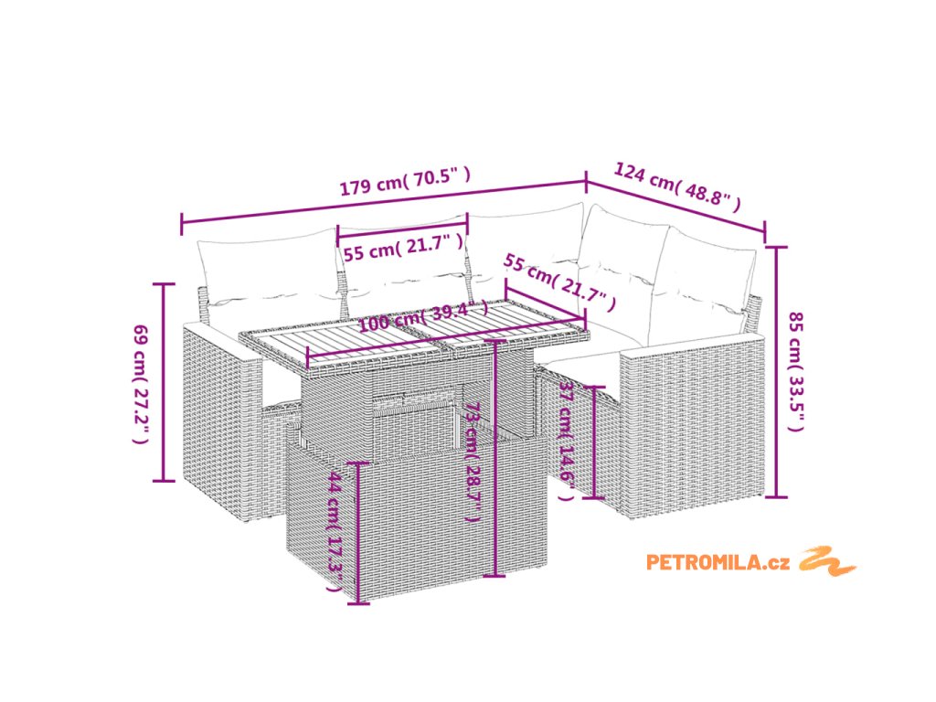 Tato zahradní sedací souprava je dokonalým doplňkem vaší zahrady, terasy nebo dvorku a poskytne vám pohodlné a příjemné místo, kde si můžete povídat s rodinou a přáteli nebo jen tak odpočívat a užívat si pobyt venku.