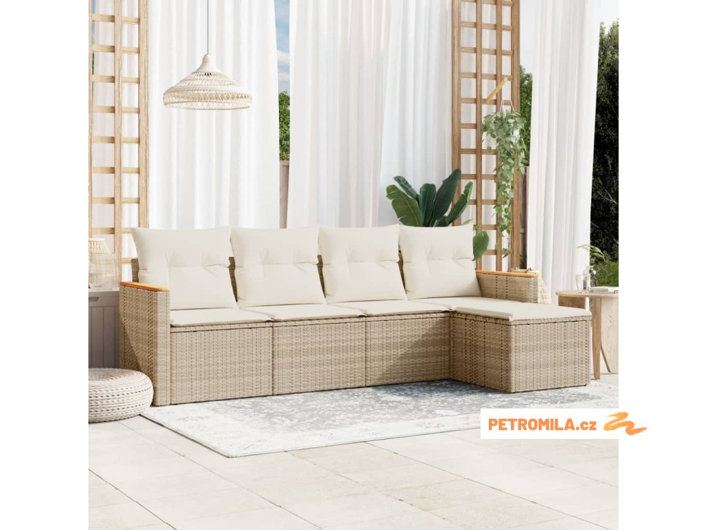 5dílná zahradní sedací souprava s poduškami béžová polyratan