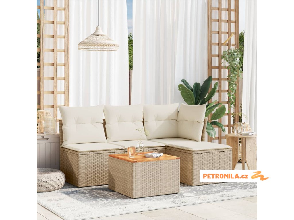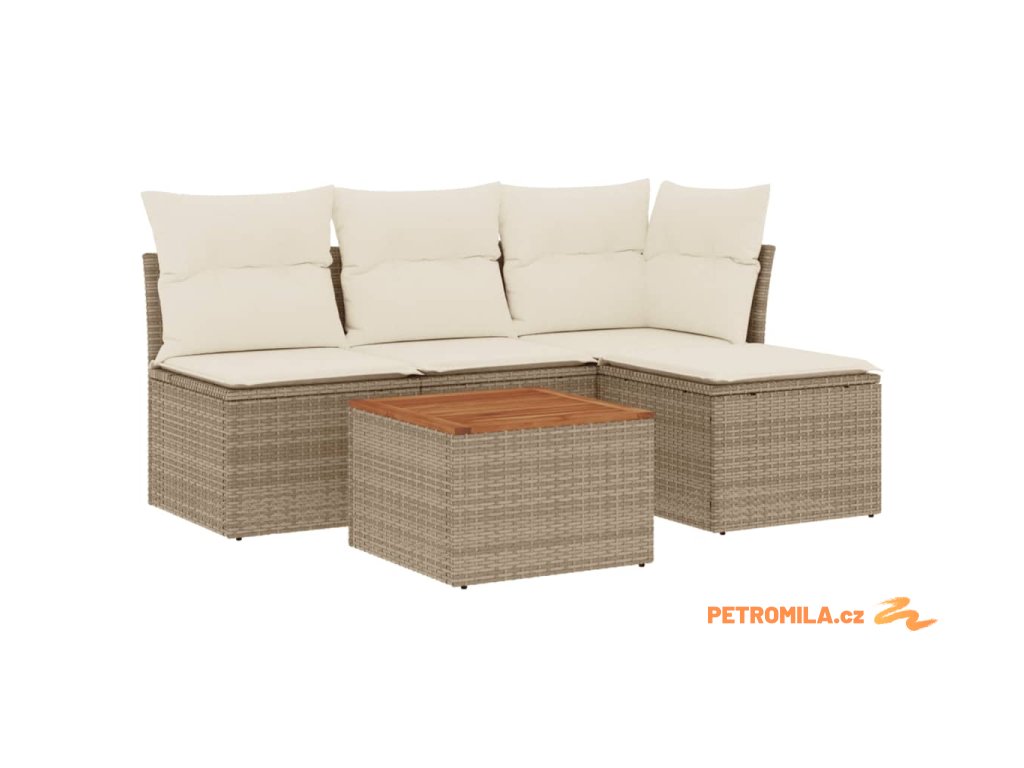 5dílná zahradní sedací souprava s poduškami béžová polyratan