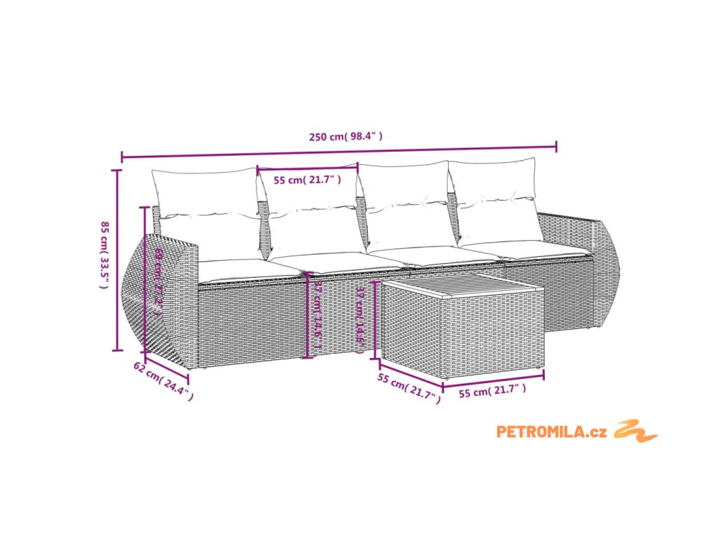 Tato zahradní sedací souprava je dokonalým doplňkem vaší zahrady, terasy nebo dvorku a poskytne vám pohodlné a příjemné místo, kde si můžete povídat s rodinou a přáteli nebo jen tak odpočívat a užívat si pobyt venku.