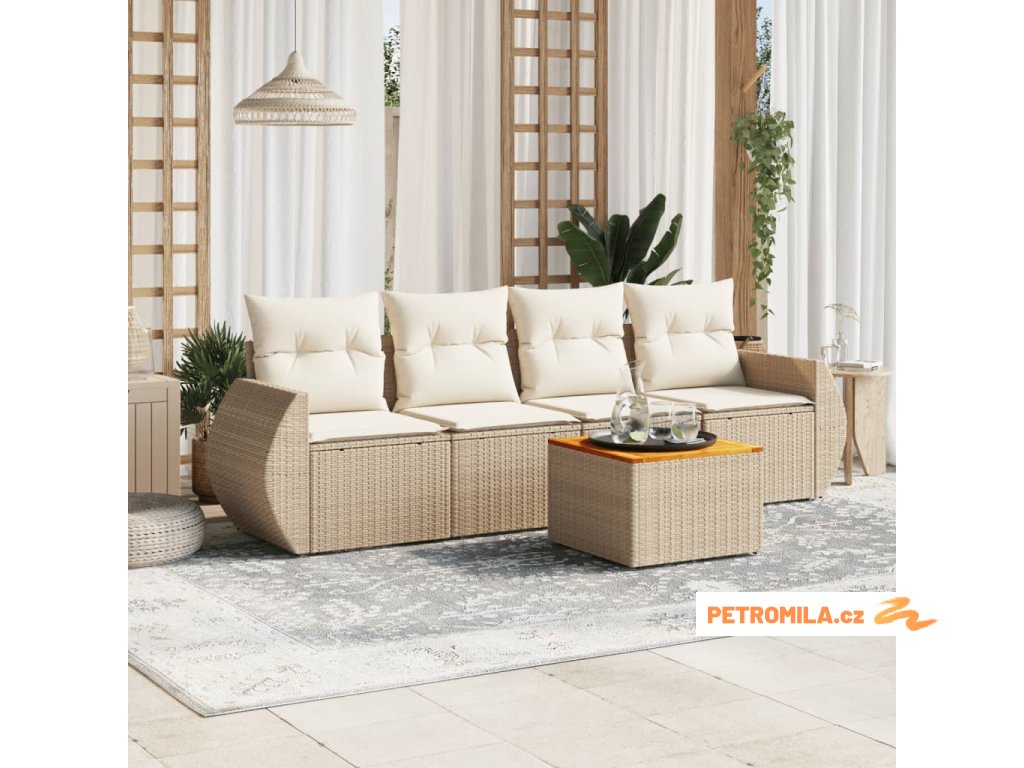 5dílná zahradní sedací souprava s poduškami béžová polyratan
