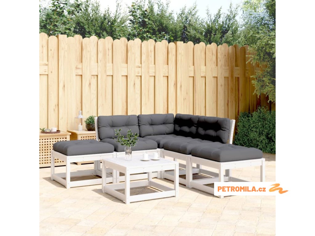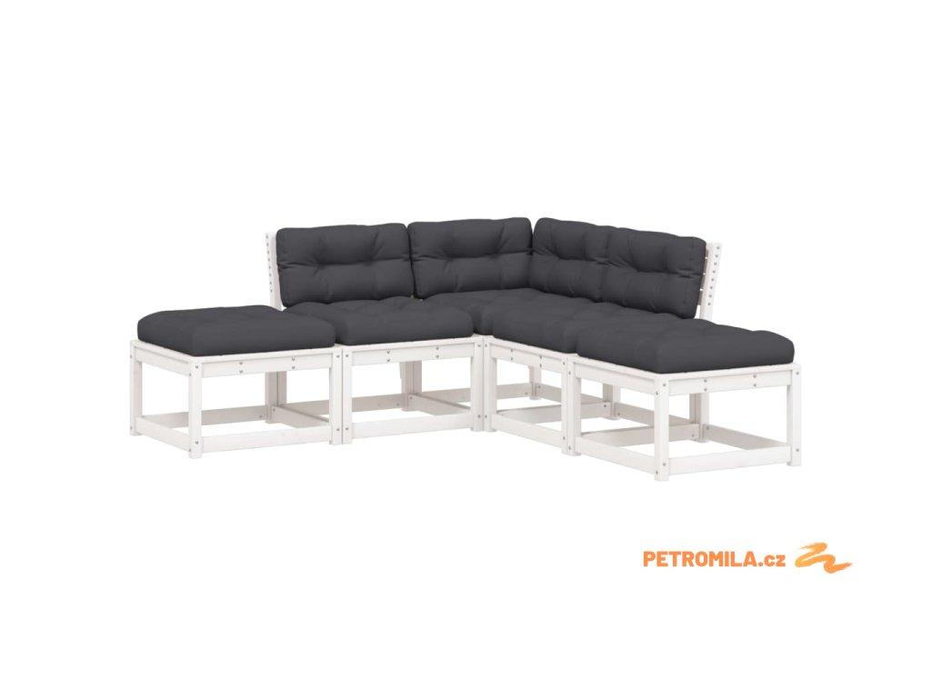 5dílná zahradní sedací souprava s poduškami bílá masiv borovice