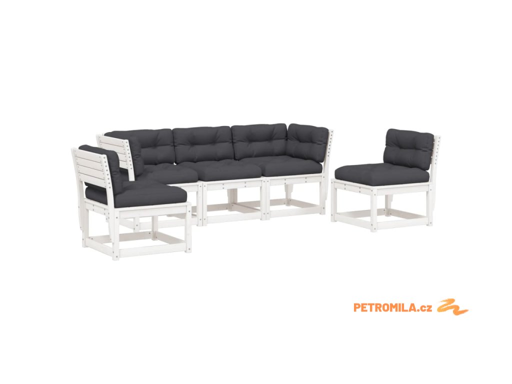 5dílná zahradní sedací souprava s poduškami bílá masiv borovice