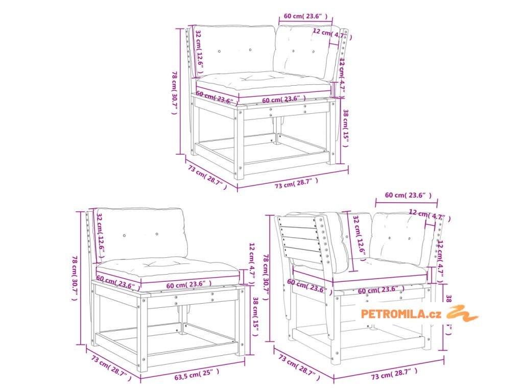 - Rozměry podušky na sedák: 60 x 60 x 12 cm (D x Š x T)