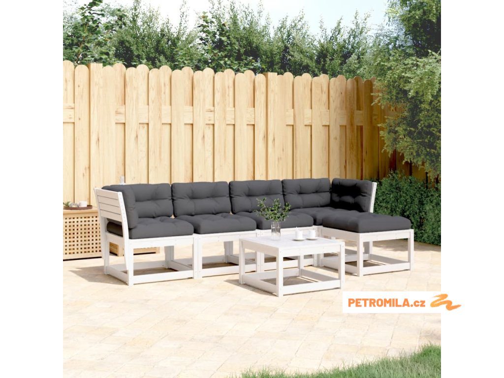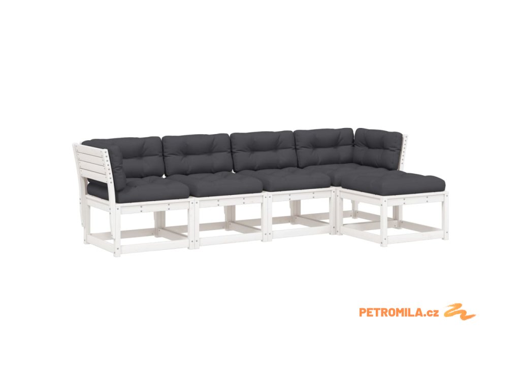 5dílná zahradní sedací souprava s poduškami bílá masiv borovice