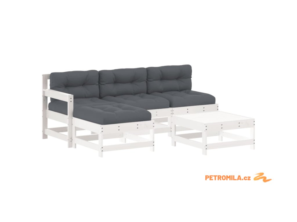 5dílná zahradní sedací souprava s poduškami bílá masivní dřevo