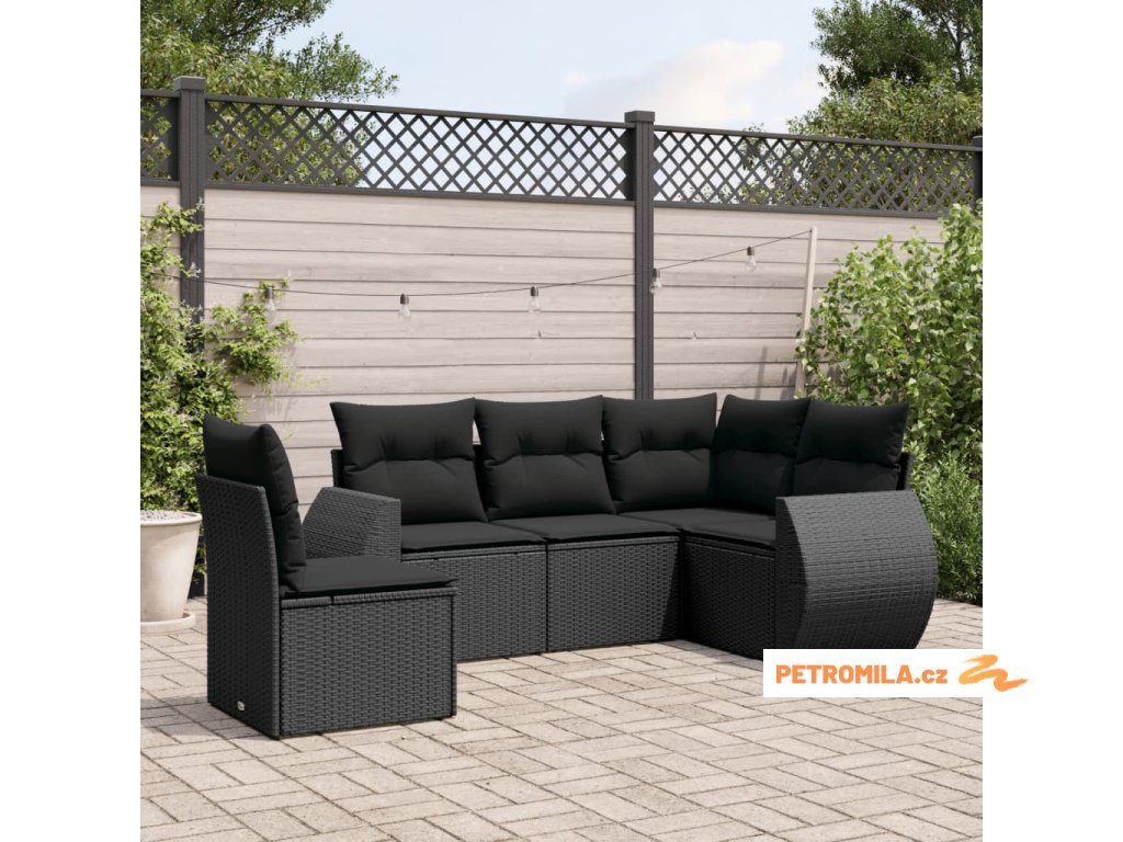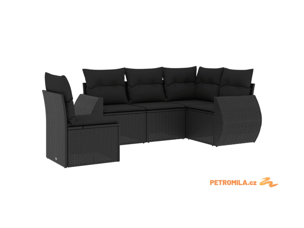 5dílná zahradní sedací souprava s poduškami černá polyratan