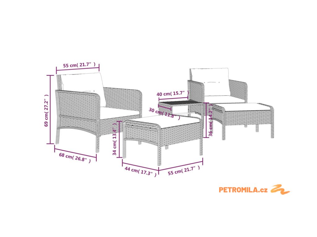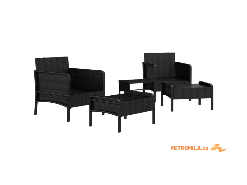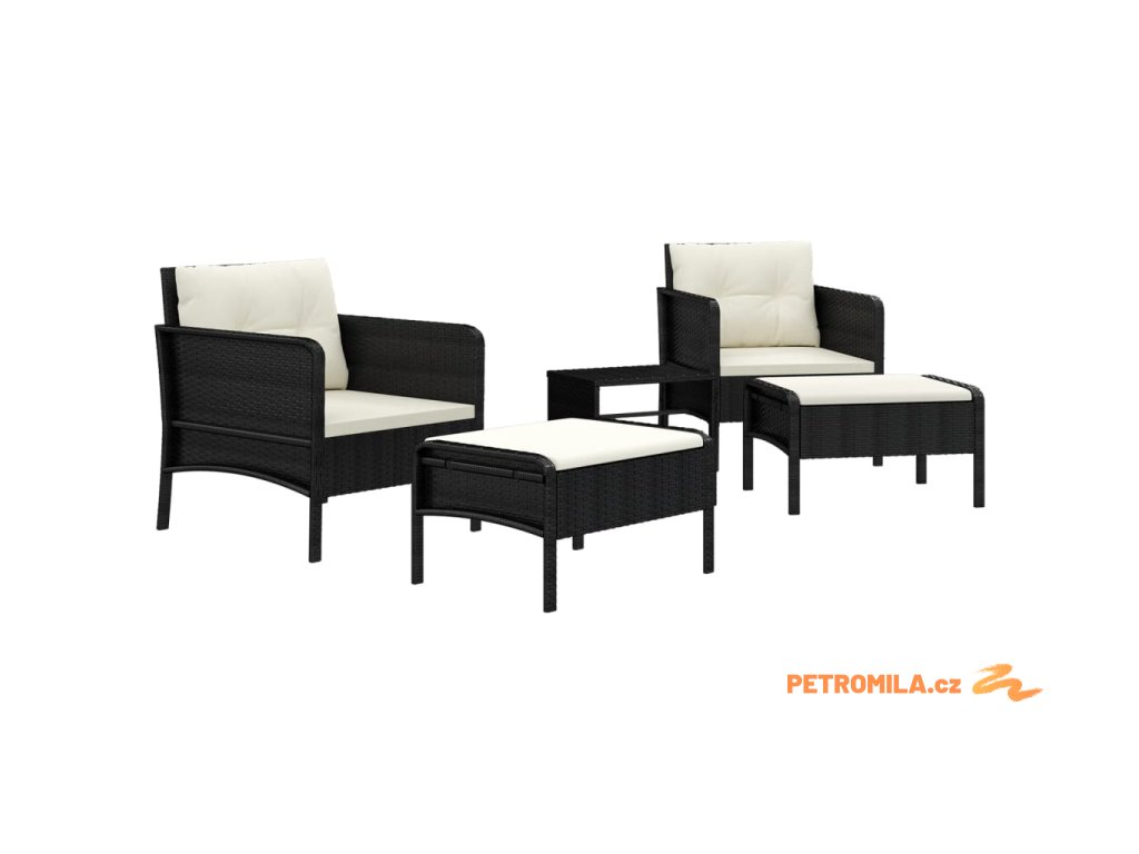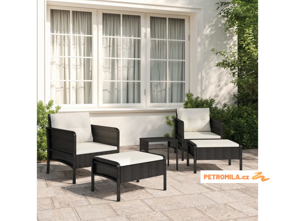 5dílná zahradní sedací souprava s poduškami černá polyratan