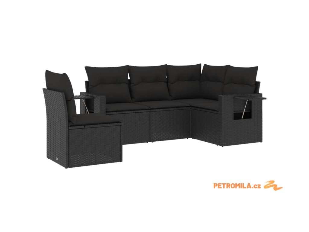 5dílná zahradní sedací souprava s poduškami černá polyratan