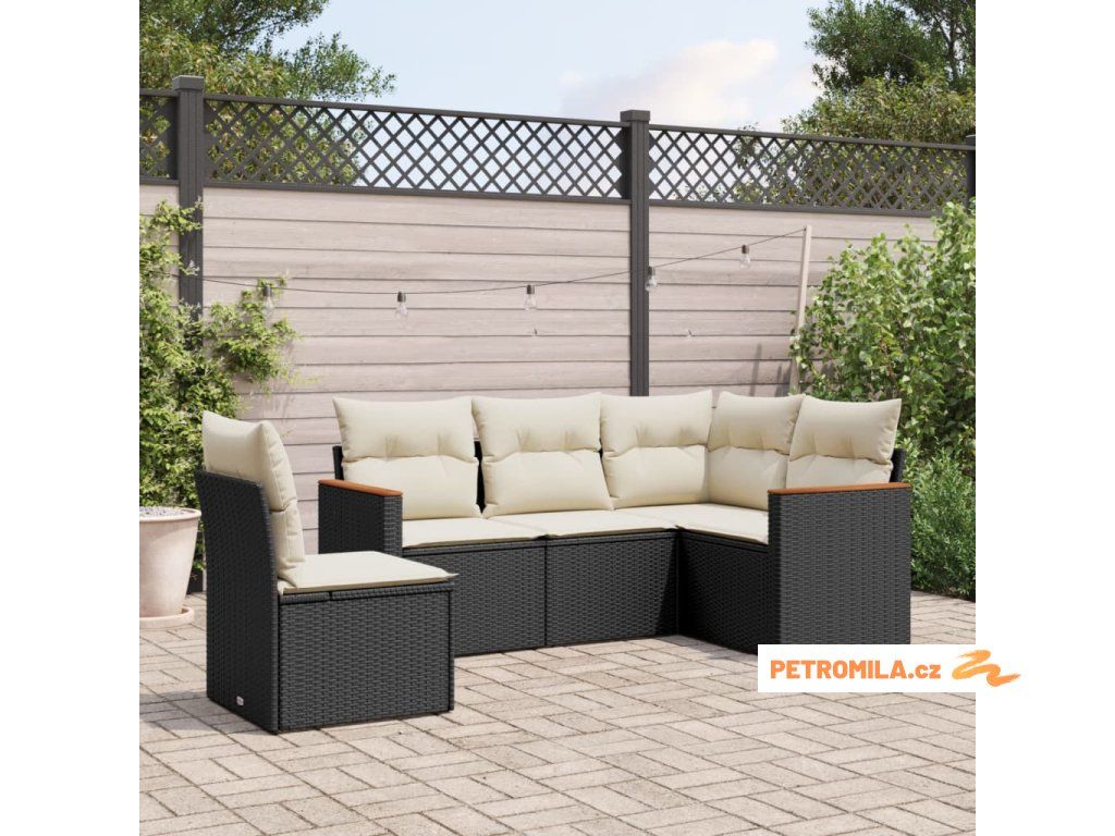 5dílná zahradní sedací souprava s poduškami černá polyratan