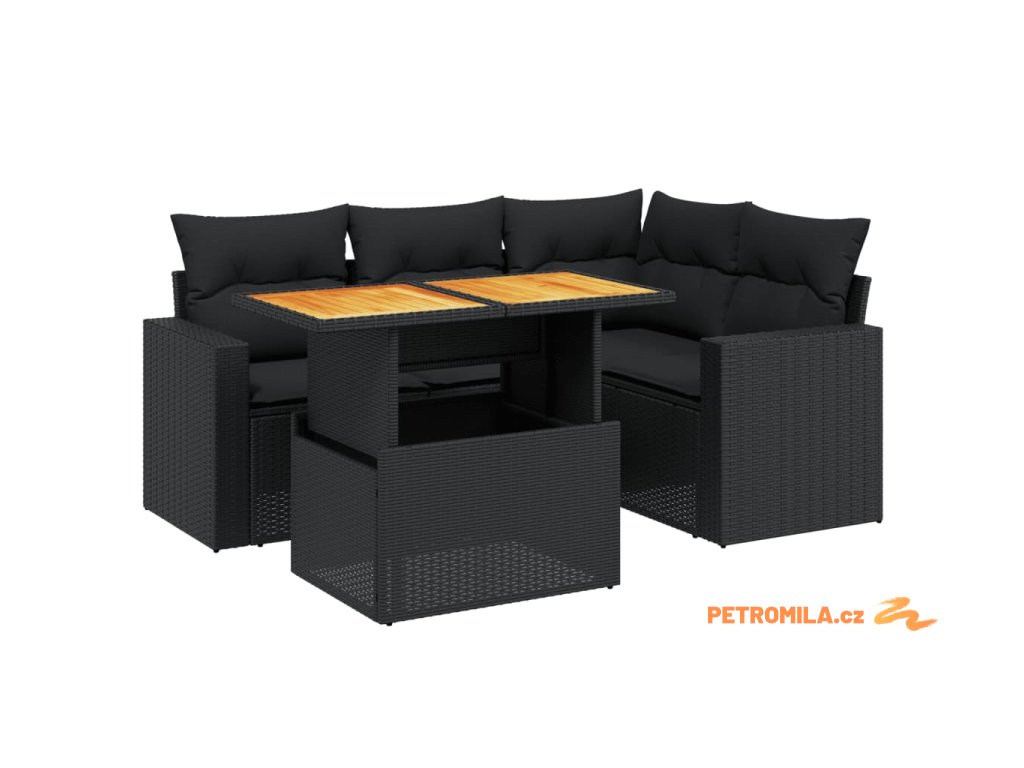 5dílná zahradní sedací souprava s poduškami černá polyratan