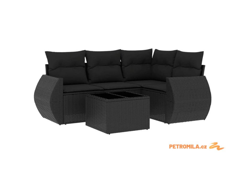 5dílná zahradní sedací souprava s poduškami černá polyratan