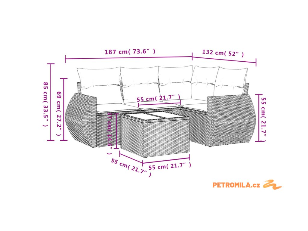 Tato zahradní sedací souprava je dokonalým doplňkem vaší zahrady, terasy nebo dvorku a poskytne vám pohodlné a příjemné místo, kde si můžete povídat s rodinou a přáteli nebo jen tak odpočívat a užívat si pobyt venku.