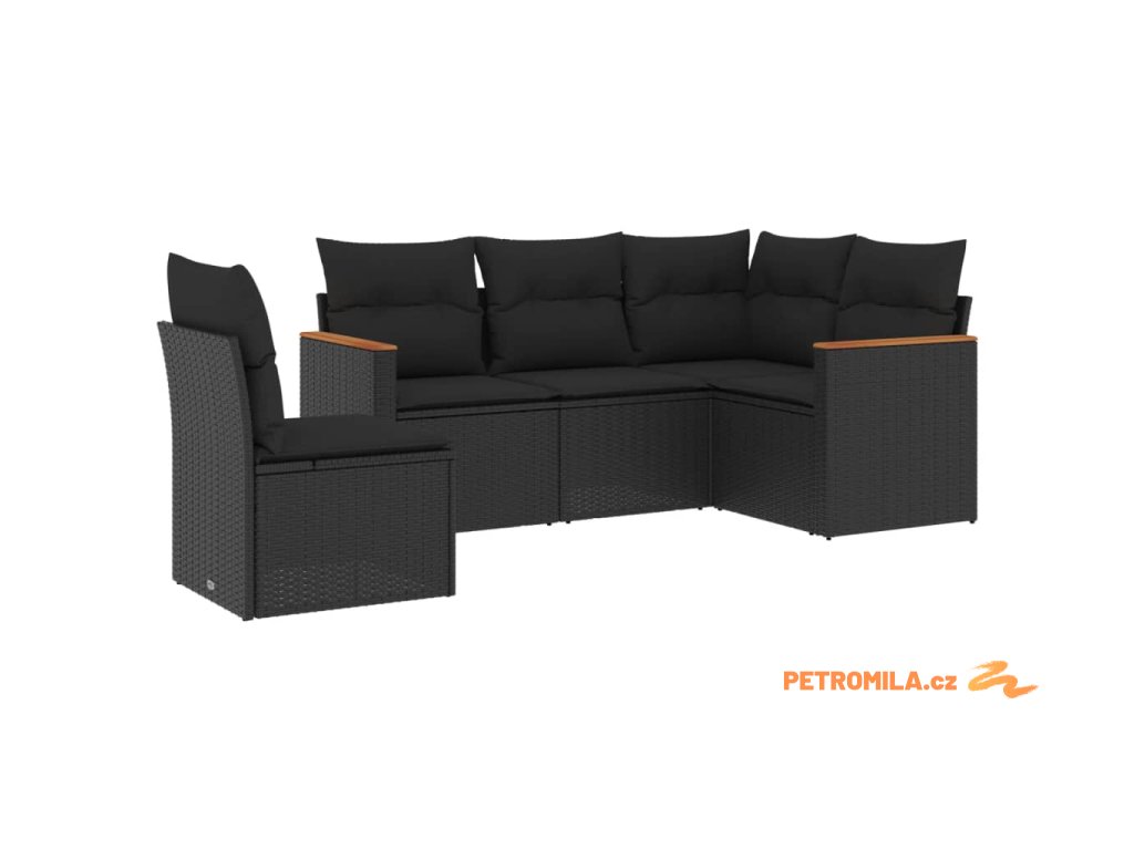 5dílná zahradní sedací souprava s poduškami černá polyratan