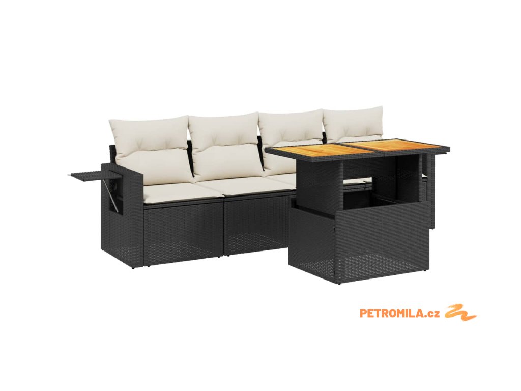 5dílná zahradní sedací souprava s poduškami černá polyratan
