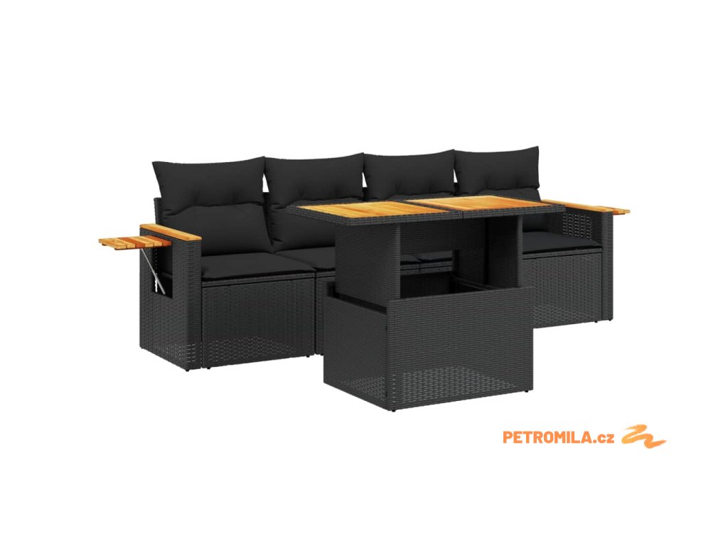 5dílná zahradní sedací souprava s poduškami černá polyratan