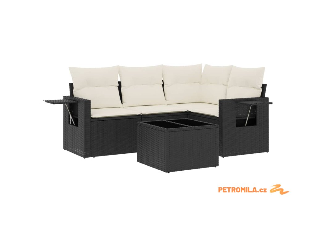 5dílná zahradní sedací souprava s poduškami černá polyratan