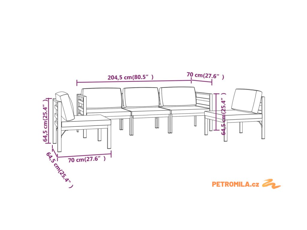 - Rozměry středové pohovky: 64,5 x 70 x 64,5 cm (Š x H x V)