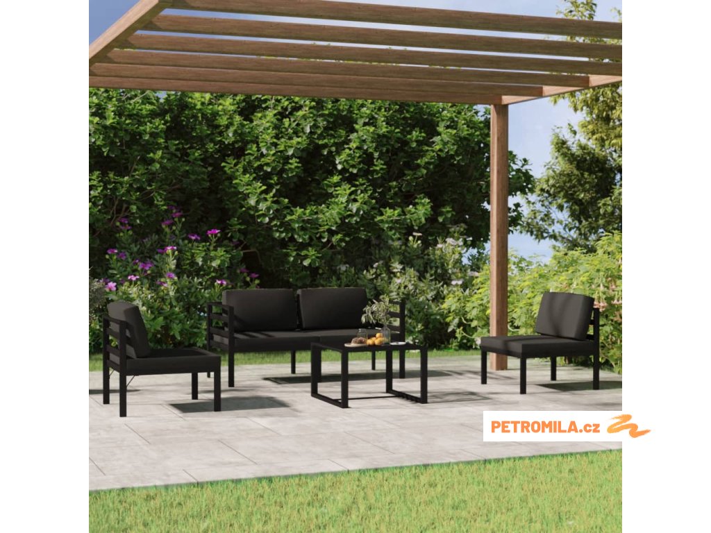 5dílná zahradní sedací souprava s poduškami hliník antracitová