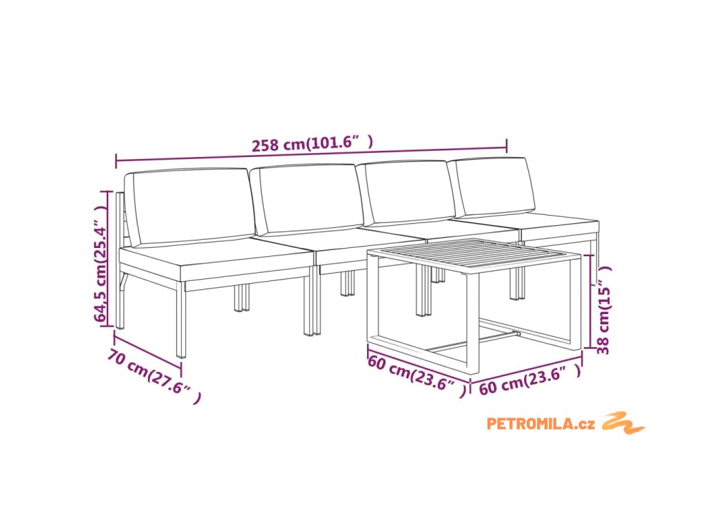 - Rozměry středové pohovky: 64,5 x 70 x 64,5 cm (Š x H x V)