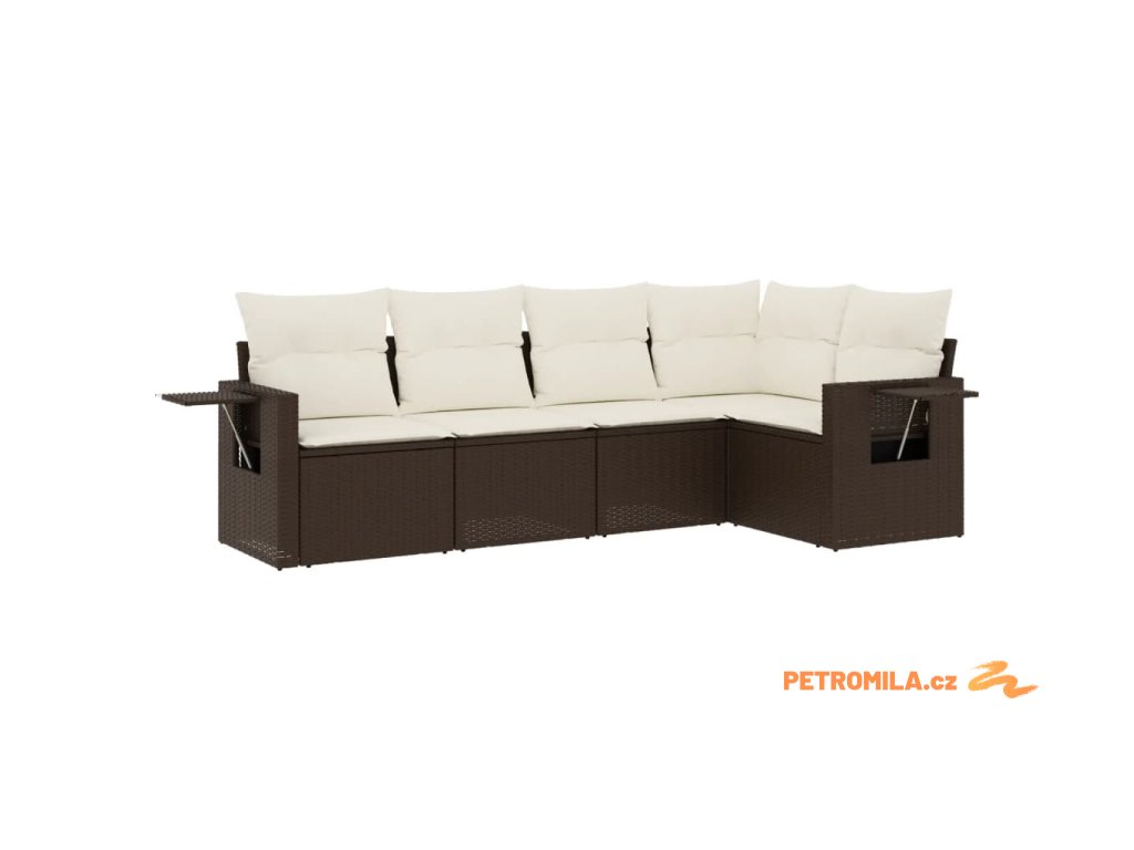 5dílná zahradní sedací souprava s poduškami hnědá polyratan