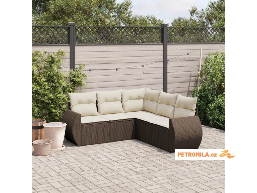 5dílná zahradní sedací souprava s poduškami hnědá polyratan