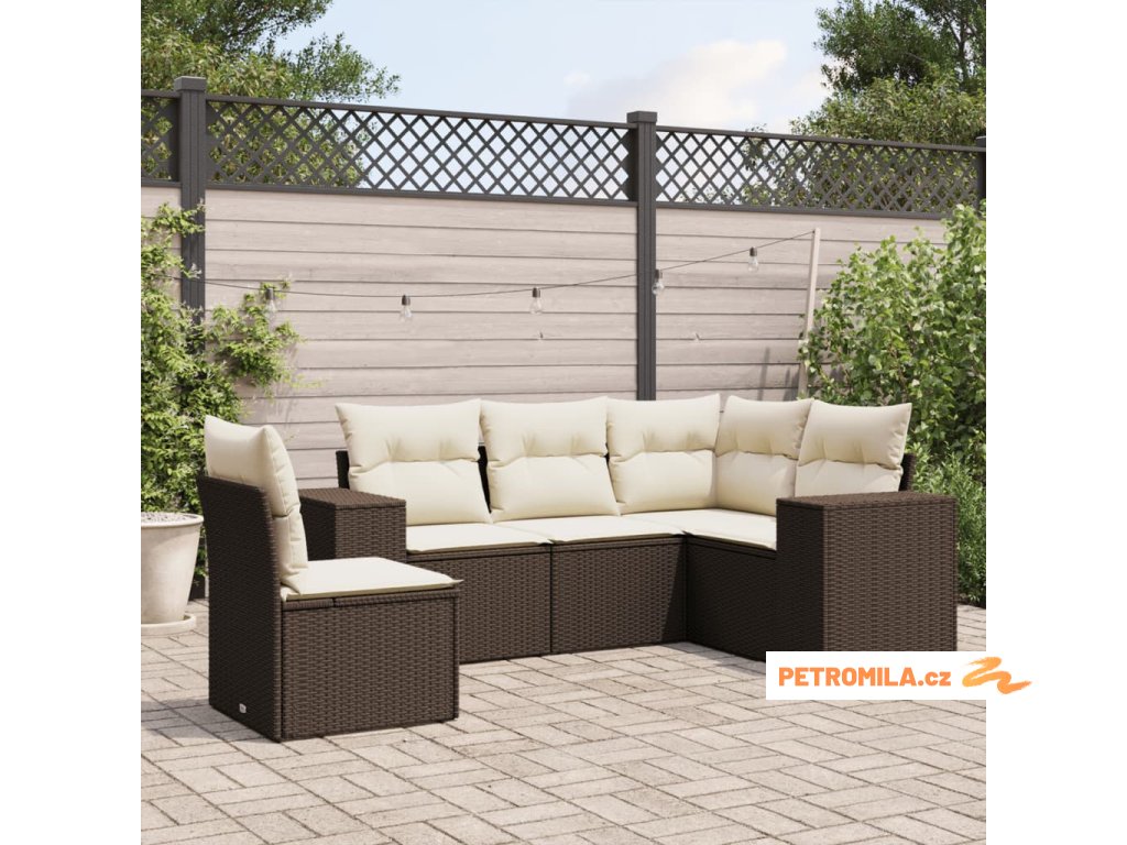 5dílná zahradní sedací souprava s poduškami hnědá polyratan
