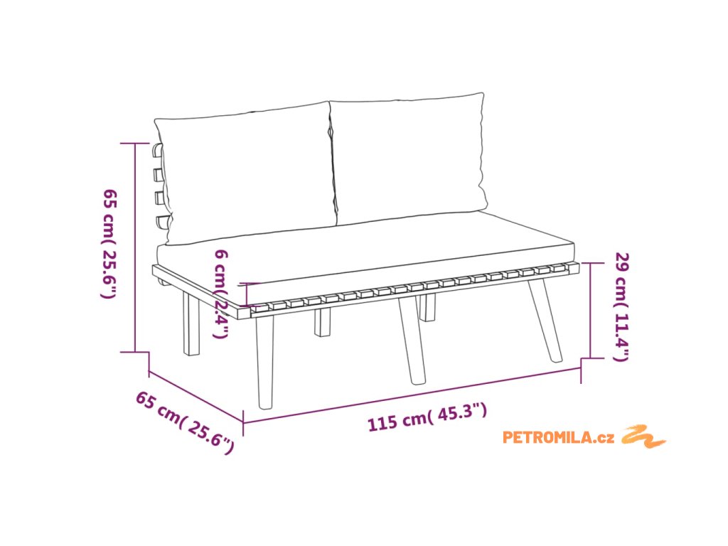 - Rozměry podušky na lavici: 115 x 60 x 6 cm (Š x H x V)