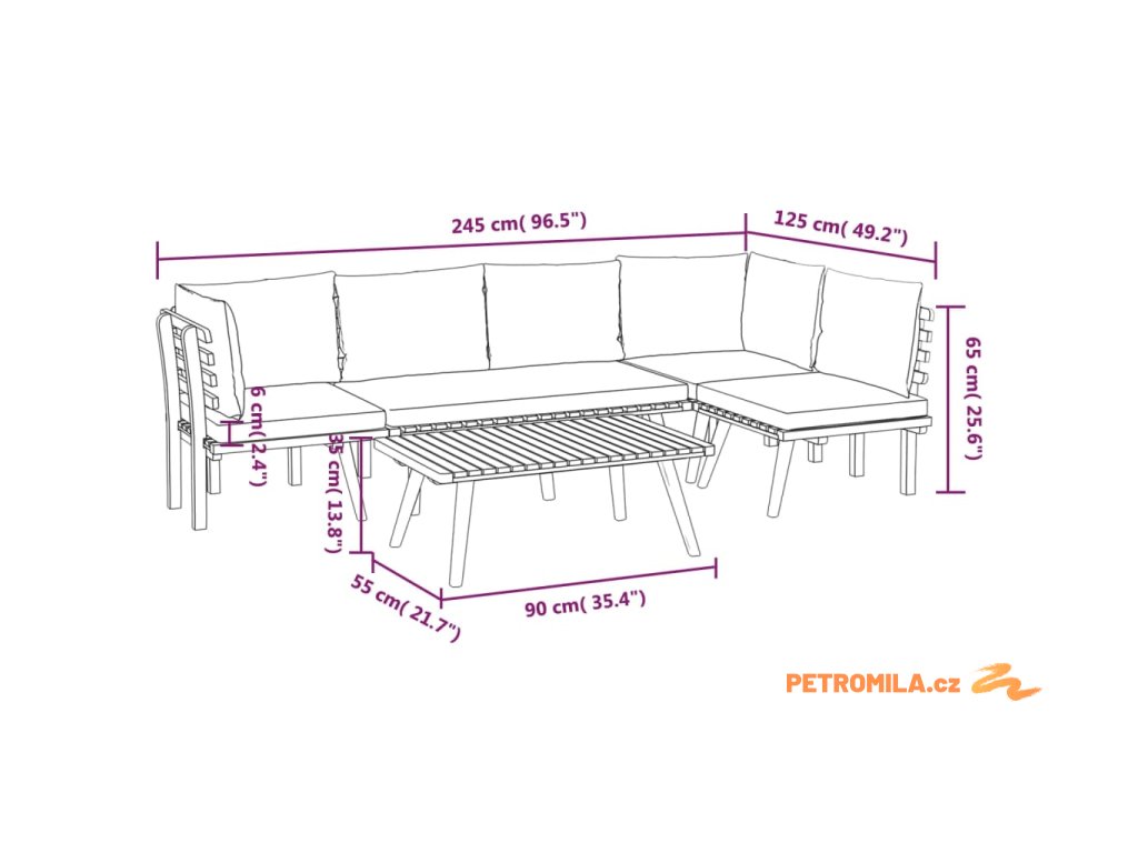 - Rozměry středové pohovky: 60 x 65 x 65 cm (Š x H x V)