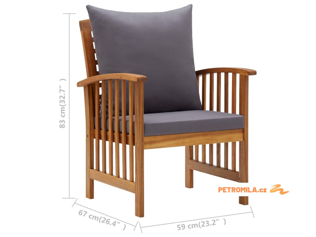 Set zahradního nábytku je zhotovený z masivního akáciového dřeva s olejovou úpravou, je stabilní a má dlouhou životnost. Tlusté podušky na sedák a opěradlo poskytují měkké posezení. Konferenční stolek s masivní dřevěnou stolní deskou s lamelovým designem poslouží jako perfektní odkládací plocha pro vaše občerstvení, mísy s ovocem, dekorativní předměty a další nezbytnosti. Na židlích s lehce zaobleným opěradlem a loketními opěrkami se velmi pohodlně sedí.