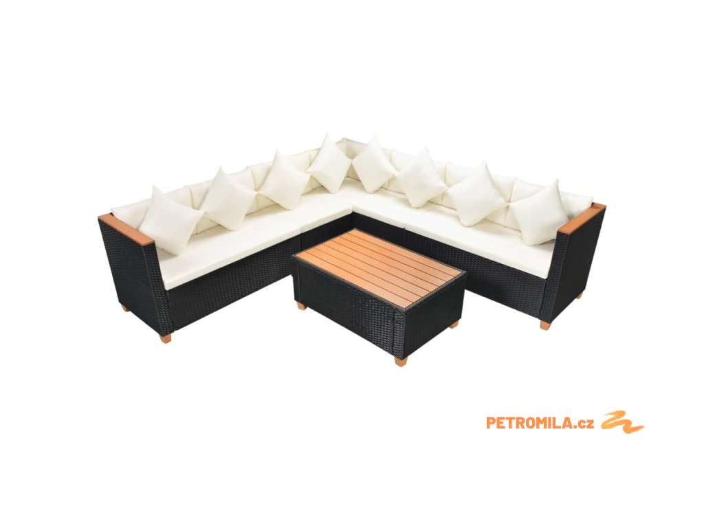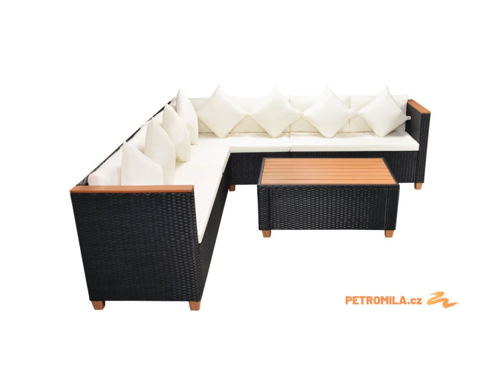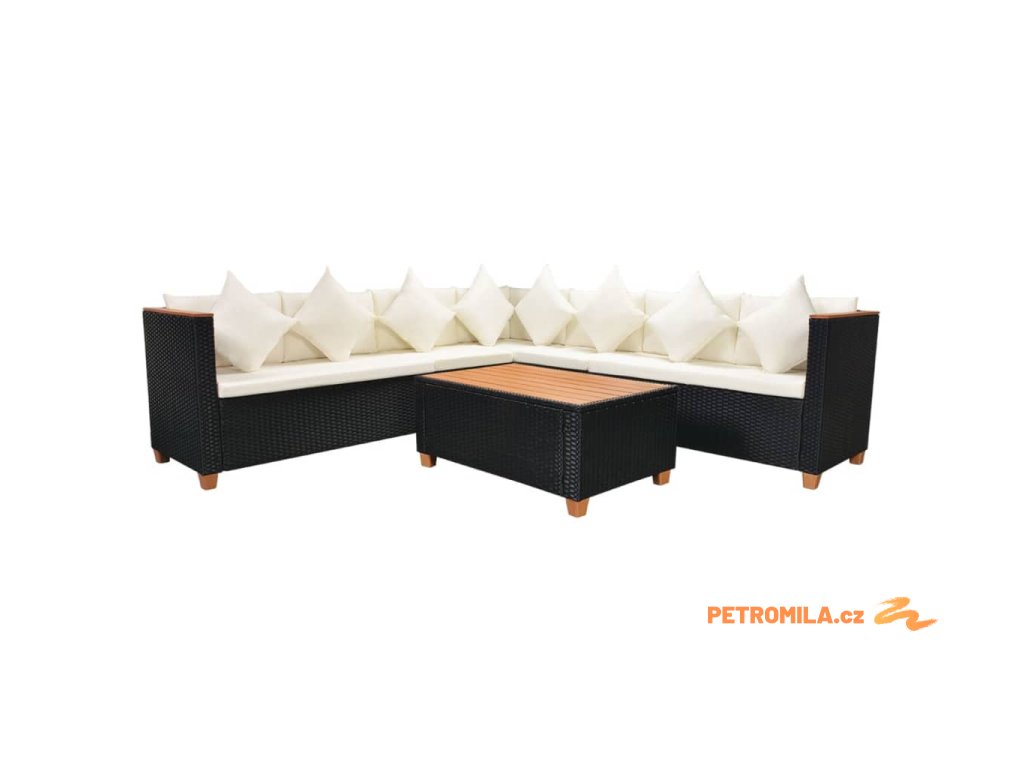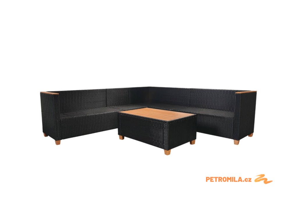 5dílná zahradní sedací souprava s poduškami polyratan černá
