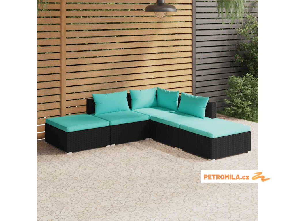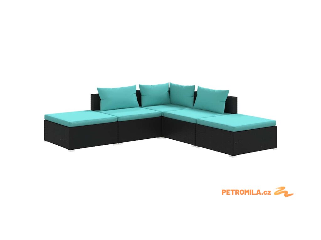 5dílná zahradní sedací souprava s poduškami polyratan černá