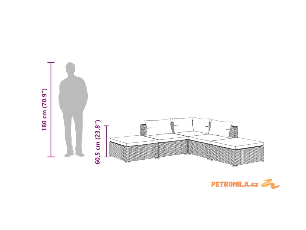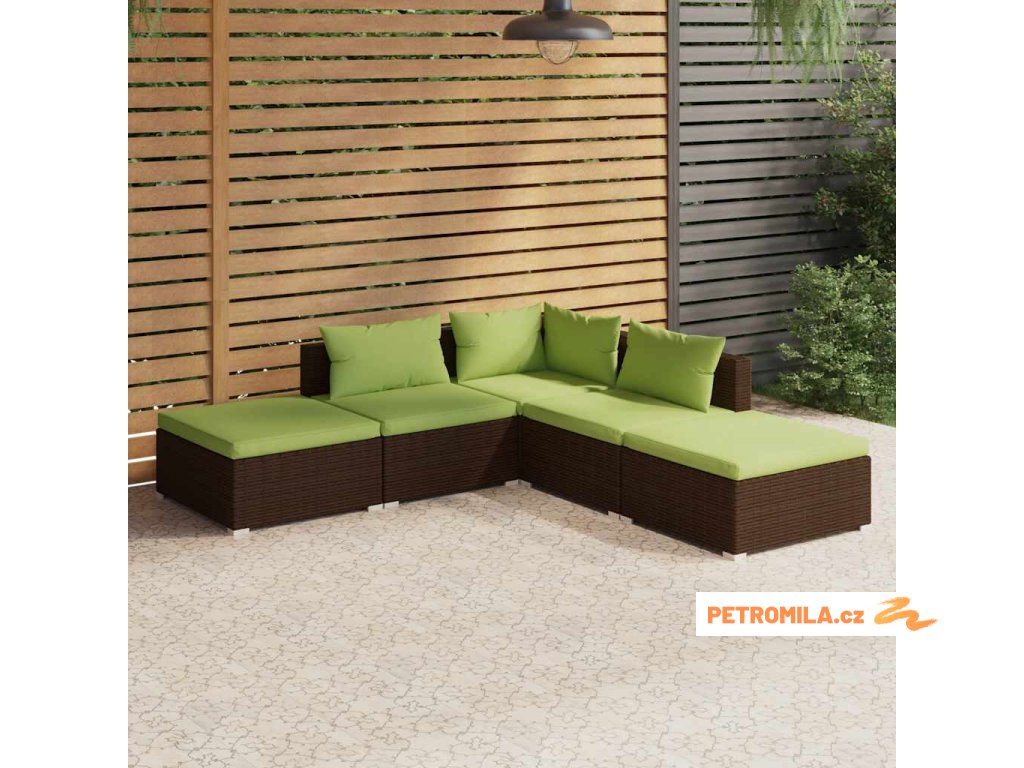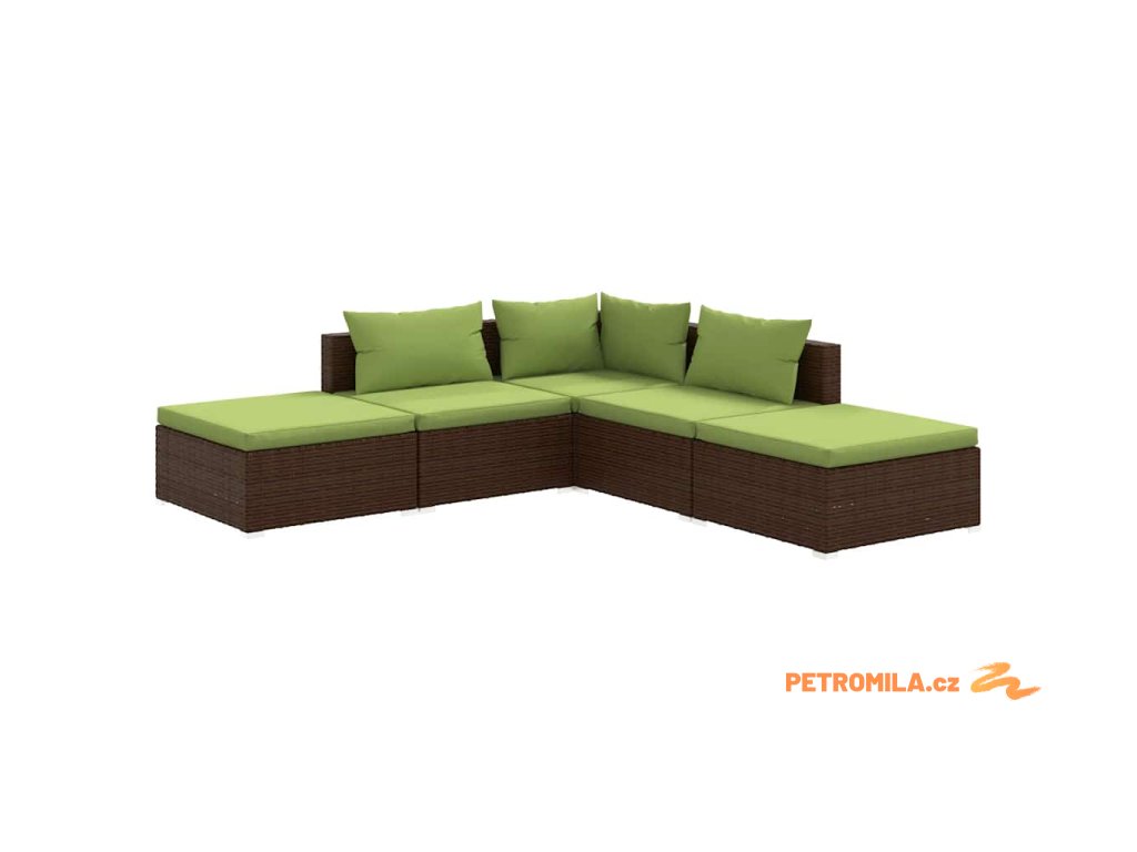 5dílná zahradní sedací souprava s poduškami polyratan hnědá