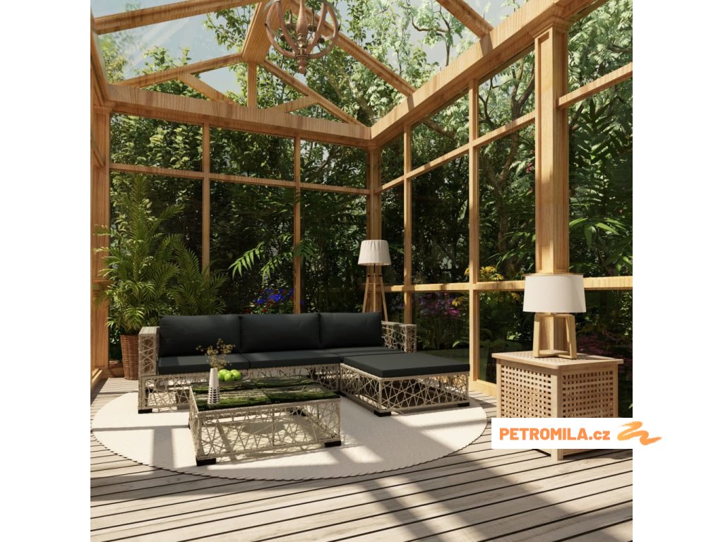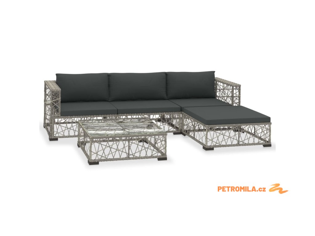 5dílná zahradní sedací souprava s poduškami polyratan šedá