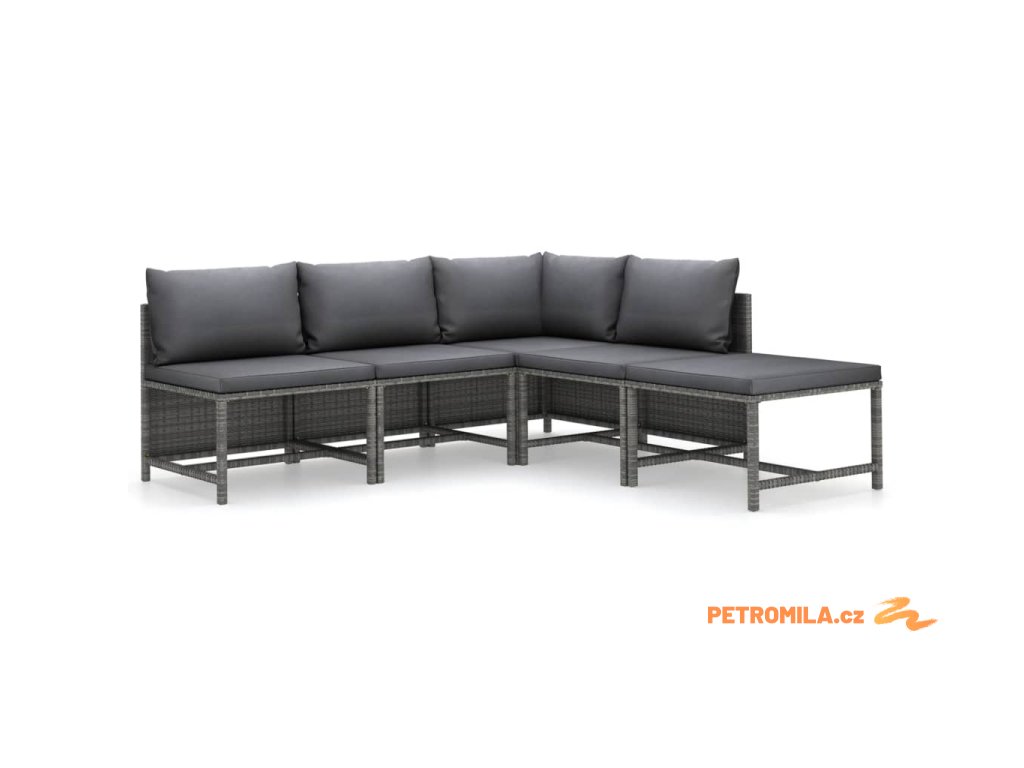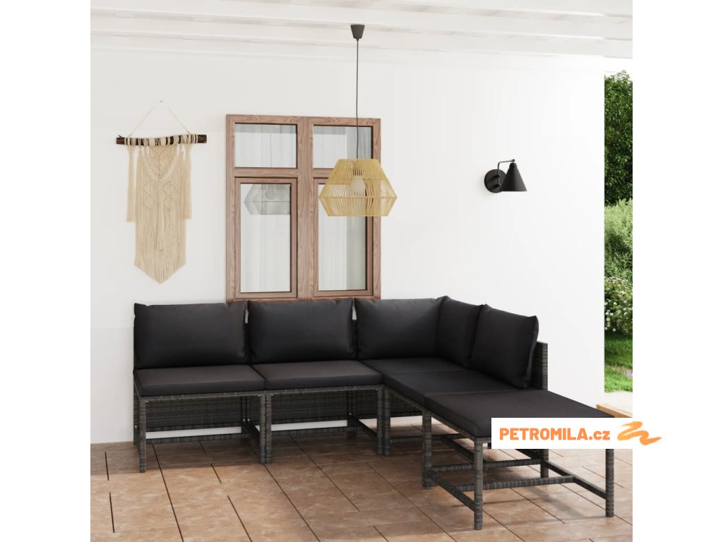 5dílná zahradní sedací souprava s poduškami polyratan šedá