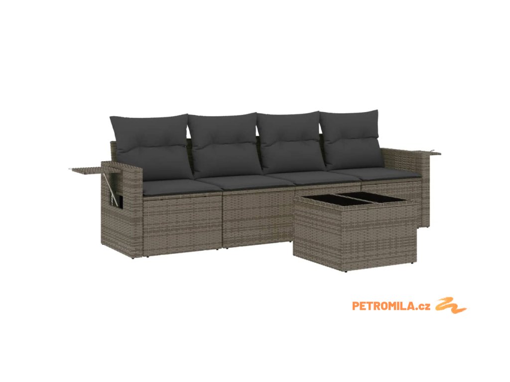 5dílná zahradní sedací souprava s poduškami šedá polyratan