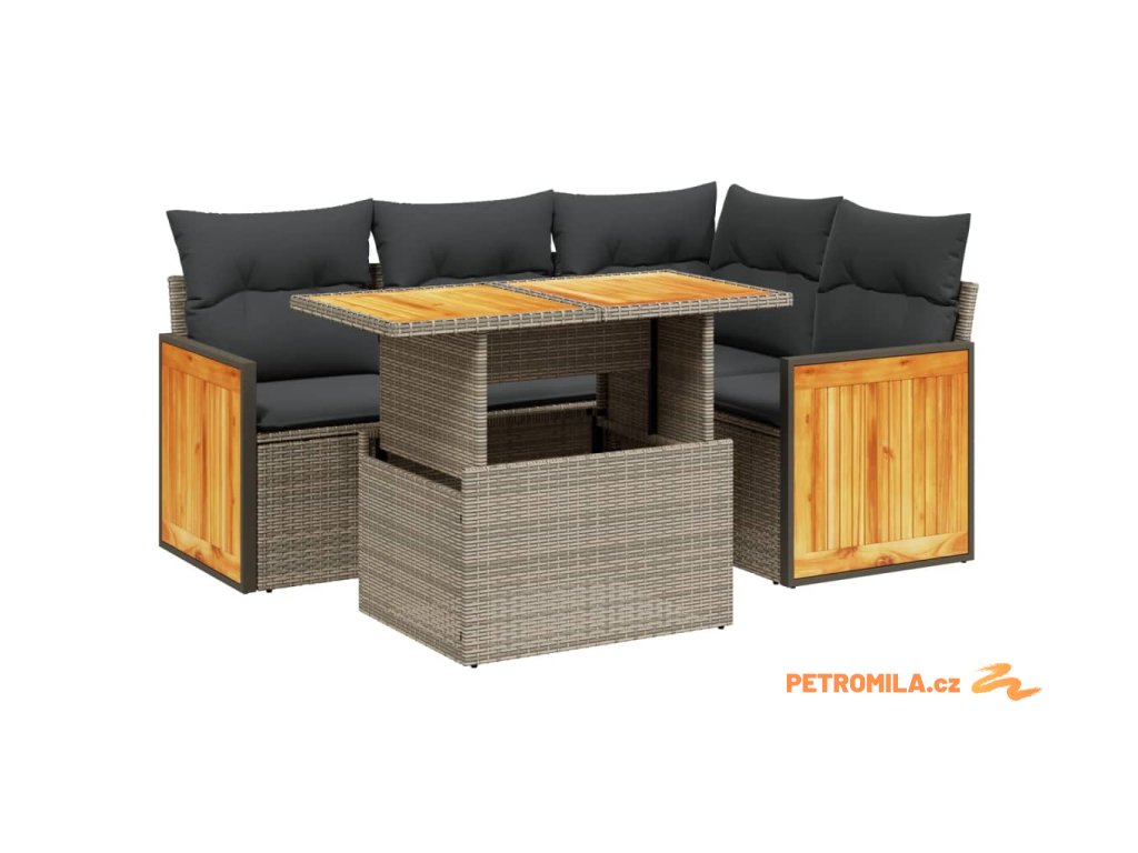 5dílná zahradní sedací souprava s poduškami šedá polyratan